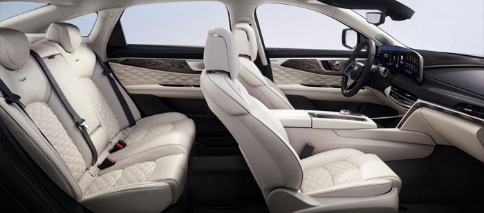 值得一提的是,新CT6将新增「云端谧境」内饰主题配色,以萃取云絮的轻柔色泽搭配Finenappa半苯胺真皮的细腻与木纹的自然肌理;33英寸9K环幕式超视网膜屏搭配全新V5.0车机系统,呈现细腻沉浸式感官体验;联袂全面升级的舒适性配置,让座舱成为大气淡泊的云端空间,尽享奢华体验。