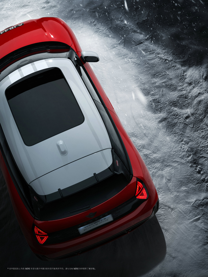 新车以标志性辣椒红车身搭配首次应用于电动JCW车型的蒙特卡洛雪夜限定白顶还原冠军配色,车顶独特的雪地轨迹压纹,还原1965年极端环境中的胜利足迹。雪色轮毂与红色制动卡钳形成鲜明对比,视觉上兼具复古拉力风格与现代运动气质。车身侧面,52号冠军图腾跃然眼前,三道平行线条勾勒出蒙特卡洛拉力赛三冠王的荣耀征程;B柱的1965纪念铭牌镌刻着参赛车辆及赛车手、领航员身份信息;1965蒙特卡洛胜利纪念标遍布车身,每一处细节都在向那段雪夜征服史致敬。打开车门,1965限定门槛饰板开启时光之门,红色安全带如一道胜利印记贯穿座舱,带上专属52号胜利之钥”,它将带你重返“长刀之夜”。