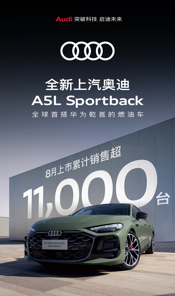 “豪华智慧性能轿车”全新上汽奥迪A5L Sportback自上市以来,凭借卓越的产品实力,迅速点燃市场热情。上市仅两个多月,累计销售超11,000台,这一亮眼成绩不仅充分印证了消费者对产品价值的高度认可,更为上汽奥迪品牌持续向上注入强劲动能。
