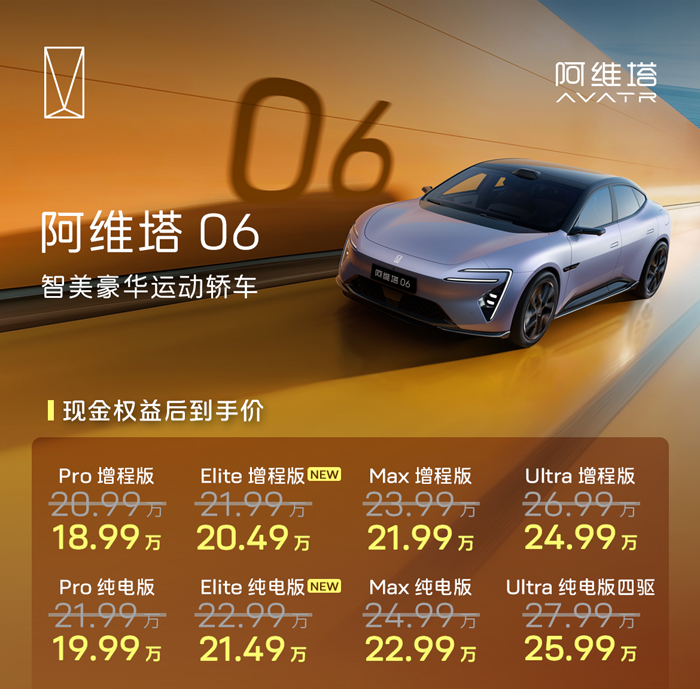 2025年11月3日,阿维塔科技正式推出阿维塔06 Elite版。新车提供纯电与增程双动力,官方指导价为21.99万元-22.99万元,权益后到手价20.49万元-21.49万元。Elite版标配华为192线激光雷达、华为乾崑ADS 4与鸿蒙座舱HarmonySpace 5,成为当前市场上搭载华为激光雷达最超值的轿车。