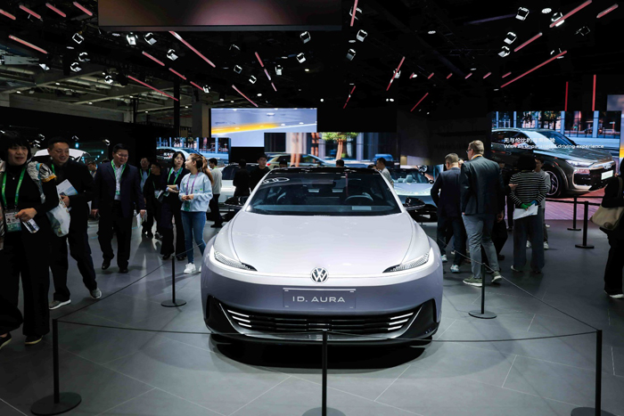 观众在进博会现场参观大众汽车品牌ID. AURA