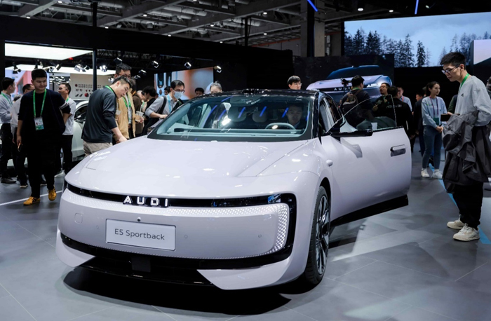 观众在进博会现场参观奥迪 E5 Sportback