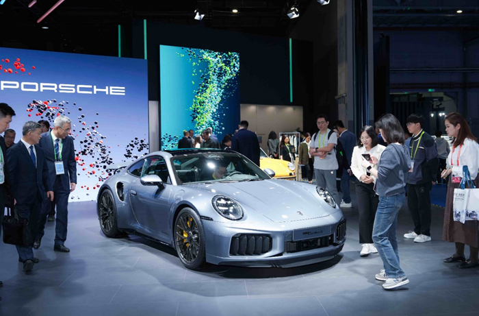 而在展台右侧,保时捷品牌以一场跨越时空的对话,生动演绎经典传承与锐意创新的深度融合。史上最强量产911--新款 911 Turbo S 在进博会迎来亚洲首秀,凭借创新T-Hybrid双电动涡轮增压系统、保时捷动态底盘控制系统(ehPDCC)以及523KW、800 Nm的强劲性能表现,彰显其旗舰性能跑车的标杆地位。而至今已诞生 60 周年的 911 S Targa也在一旁并肩而立,一同诠释着保时捷标杆车型911历久弥新的传奇魅力。