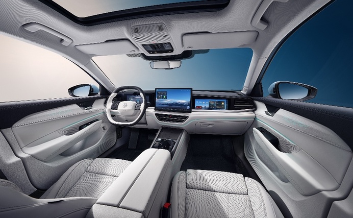 车内则以越级体验打造悦享座舱,内饰采用横向贯穿的一体化设计,搭配分层包覆工艺,不仅拉宽视觉空间,更让B级车拥有C级车的开阔感,营造出简约温馨的全新电感座舱氛围,既富有质感又不失实用性。