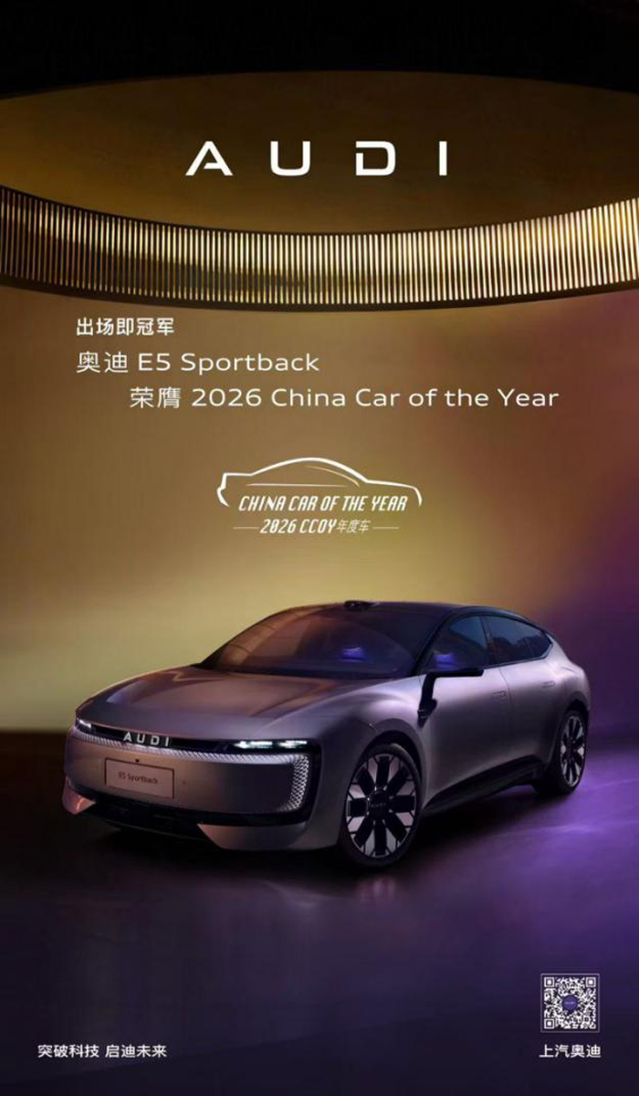 上汽奥迪持续释放增长动能,全年销量超4.7万辆,同比增长23%,连续三年创新高,展现出持续向好的增长态势。全新AUDI品牌推出的首款战略车型奥迪E5 Sportback,开辟豪华智电新路径,更在1月8日荣膺汽车行业权威大奖——“2026中国年度车”。这不仅是奥迪首次问鼎该奖项,还创下历史性纪录——全新品牌的首款车型发布第一年即获此荣誉。自去年9月上市以来新车累计终端销量6,650辆,月度销量呈现稳健的环比增长态势。