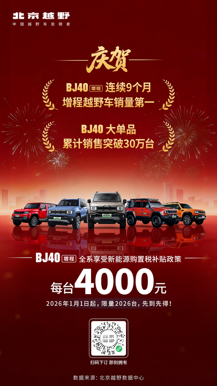 国家殿堂的认证,奠定的是权威与高度;而市场的热烈反响,则验证了其价值的真实。 实际上,十多年来,BJ40全系持续火爆,历史累计销量已突破30万台,奠定了深厚的口碑基础。而BJ40增程自2025年4月上市以来,已连续9个月稳居增程越野车市场销量榜首,展现出强劲的产品实力。