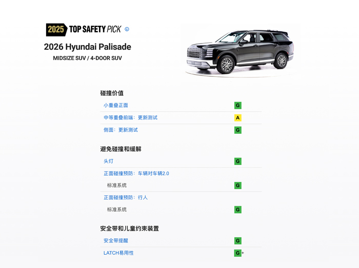 新一代帕里斯帝取得IIHS(美国公路安全保险协会)TOP SAFETY PICK(顶级安全之选)认证