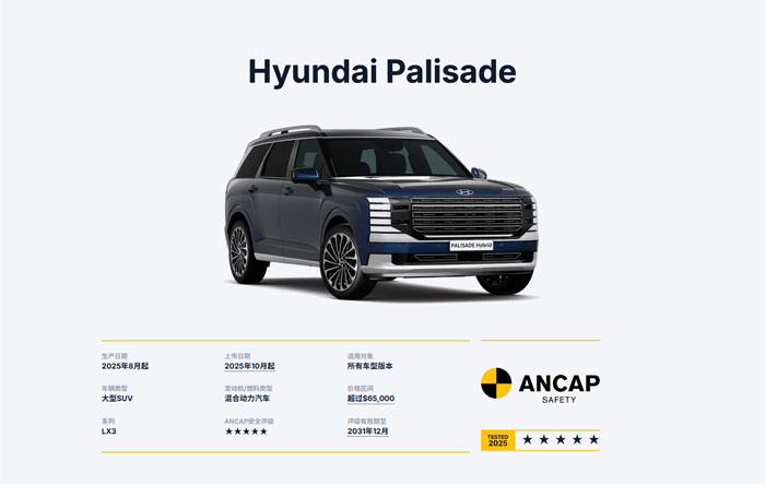 新一代帕里斯帝不仅注重舒适性,更将安全置于核心位置。其在IIHS(美国公路安全保险协会)测试与ANCAP(澳洲新车安全评鉴协会)五星安全评级中均表现出色,充分印证了车辆卓越的安全实力。这得益于现代汽车先进的整车架构:通过高比例超高强度热成型钢的应用,构筑起刚劲可靠的车身骨架;配合科学的多载荷路径结构设计,在碰撞发生时能高效引导与分散冲击能量。全系标配的多方位安全气囊及带预紧功能的安全带系统,也能进一步减少在碰撞时对驾乘人员的伤害,体现出现代汽车在主/被动安全配置上"入门即高配"的十足诚意。