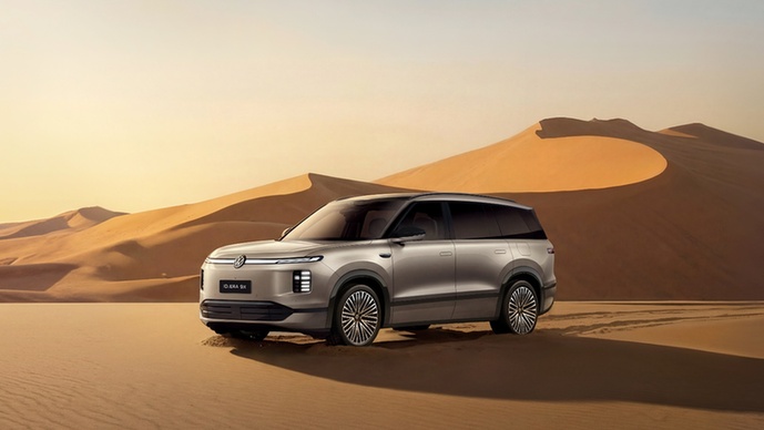 ID. ERA 9X采用0.2mm极薄硅钢片,电驱最高效率达到97.5%。在800V碳化硅平台加持下,前后双电机可瞬间迸发380kW最大功率与660N·m峰值扭矩。值得一提的是,风阻系数低至Cd 0.253,并通过中国汽研“低风阻汽车”认证,在同级大型增程SUV中位居第一,进一步降低能耗、提升续航。