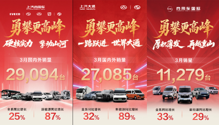 以3月销量新高、一季度稳健增长为新起点,上汽大通将继续锚定“全球轻型商用车领导者”战略愿景,持续深化新能源转型与全球化布局,以更优质的产品与服务深耕全球市场,引领轻型商用车行业迈向绿色、智能、全球化的高质量发展新阶段。
