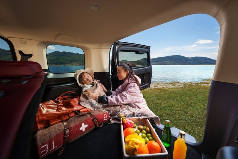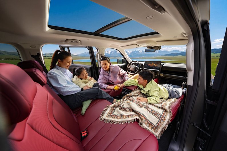 5座版车型791L超大后备厢容积,搭配45处人性化储物空间从容包揽全家所需,玩具、户外帐篷、露营装备皆可分区收纳、整齐规整,告别杂乱拥挤。后排座椅纯平放倒,瞬间变身为宽敞舒适的“移动大床房”,露营休憩、短途午休、临时歇脚主打一个自在惬意。内饰延续高端质感,熔岩红配色搭配软包门护板,触感温润亲肤,让孩子在后排自在玩耍、倚靠、触碰,全程不用担心磕碰受伤,全家出行更舒心。